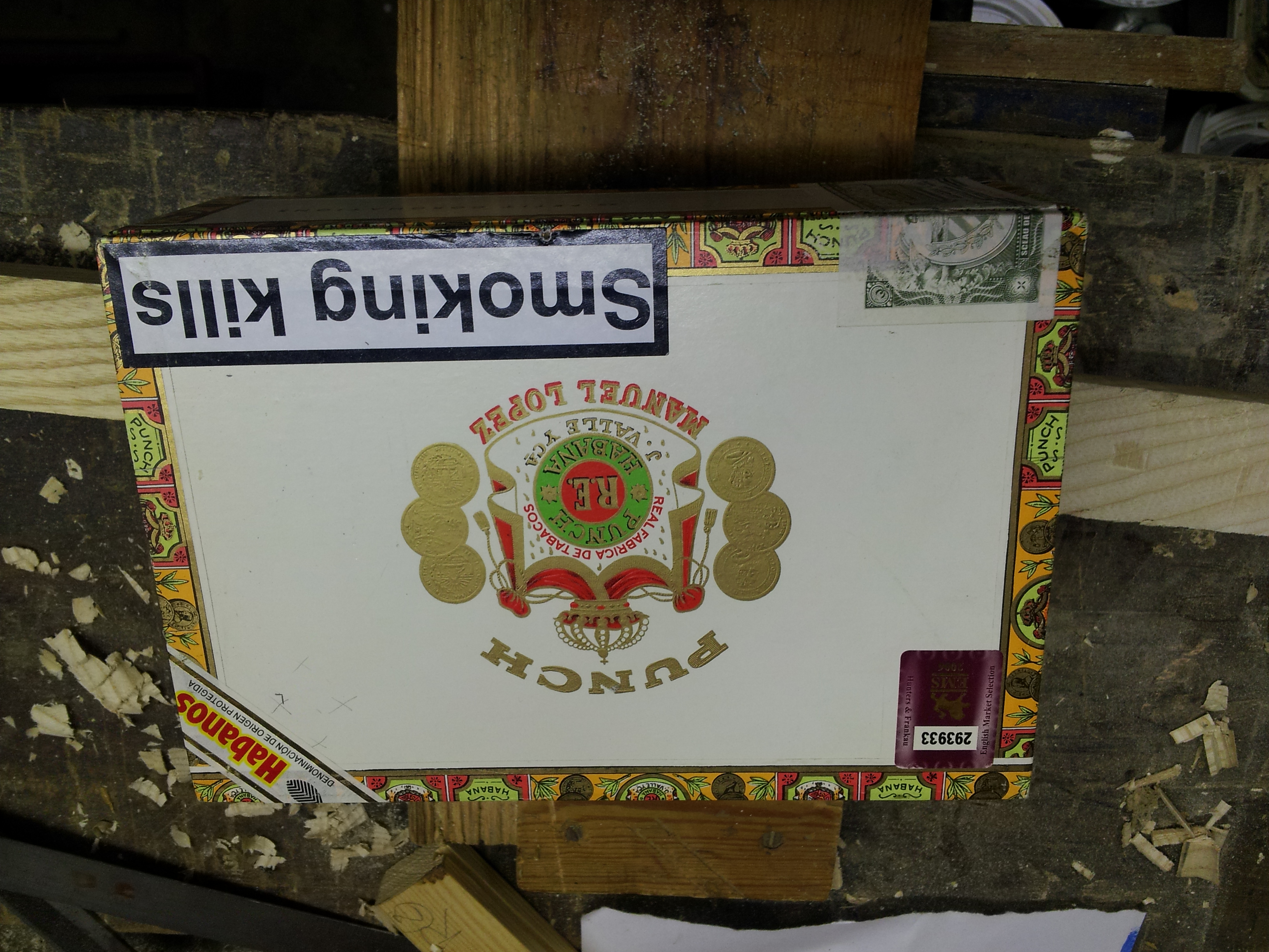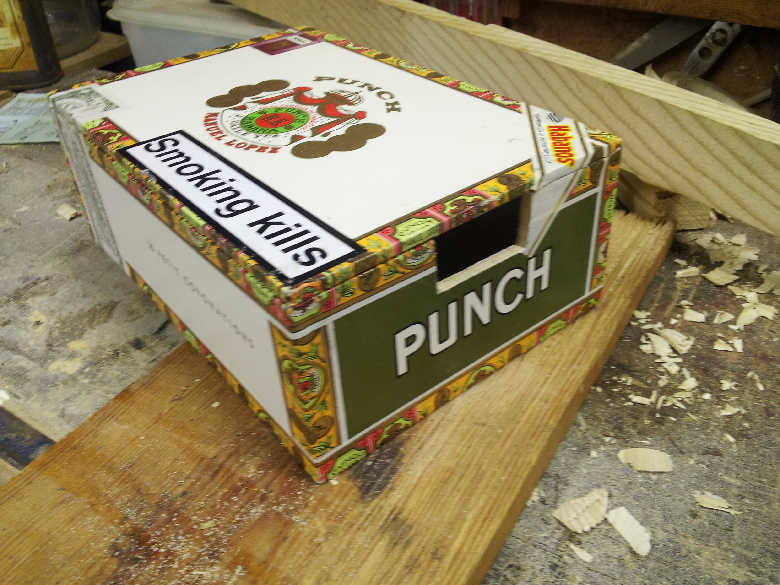 On to cheerier stuff, I’ve started making a guitar. In what is no doubt going to be, or possibly already is an emerging trend coming soon to the streets of shoreditch, I’ve started building a cigar-box guitar from a piece of maple and, well, an empty cigar box. Here’s some pics.